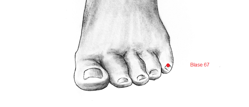 Blase 67 findest du bei beiden Füssen am äusseren Nagelrand des kleinen Zehs.